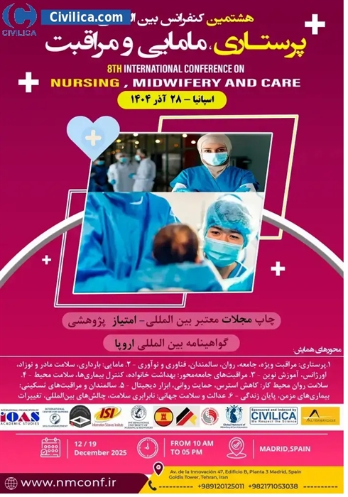 هشتمین کنفرانس بین المللی پرستاری، مامایی و مراقبت در تاریخ ۲۸ آذر ۱۴۰۴ توسط ،سازمان بین المللی مطالعات دانشگاهی برگزار خواهد شد.با توجه به اینکه این همایش به صورت رسمی برگزار می گردد، کلیه مقالات این کنفرانس در پایگاه سیویلیکا و نیز کنسرسیوم محتوای ملی نمایه خواهد شد و شما می توانید با اطمینان کامل، مقالات خود را در این همایش ارائه نموده و از امتیازات علمی ارائه مقاله کنفرانس با دریافت گواهی کنفرانس استفاده نمایید.